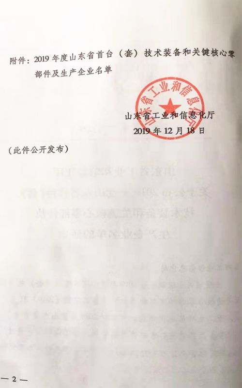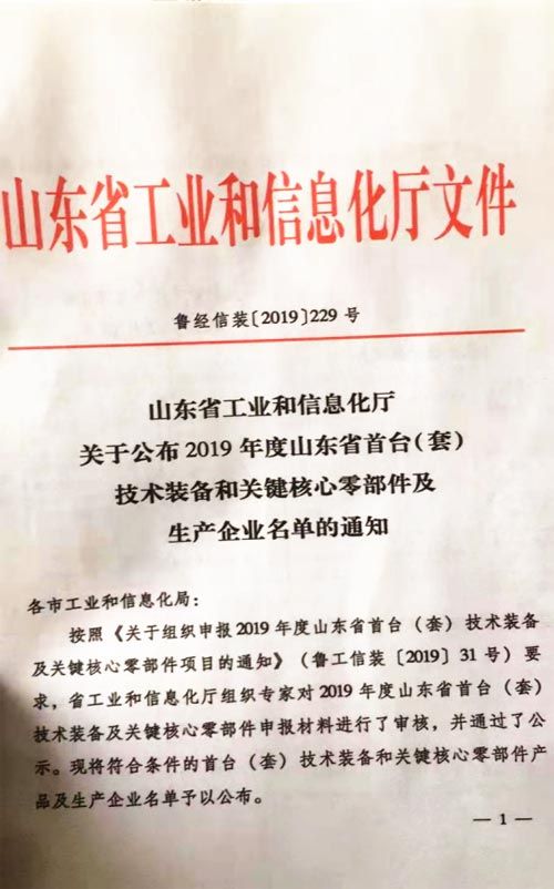 公司納入山東省首臺(tái)套生產(chǎn)企業(yè)名單